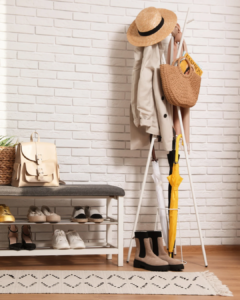 Don’t let winter boots live in the hallway all summer—or sandals in December. Store out-of-season shoes and coats elsewhere (loft, wardrobe, under the bed) and keep only what you need day-to-day within reach.