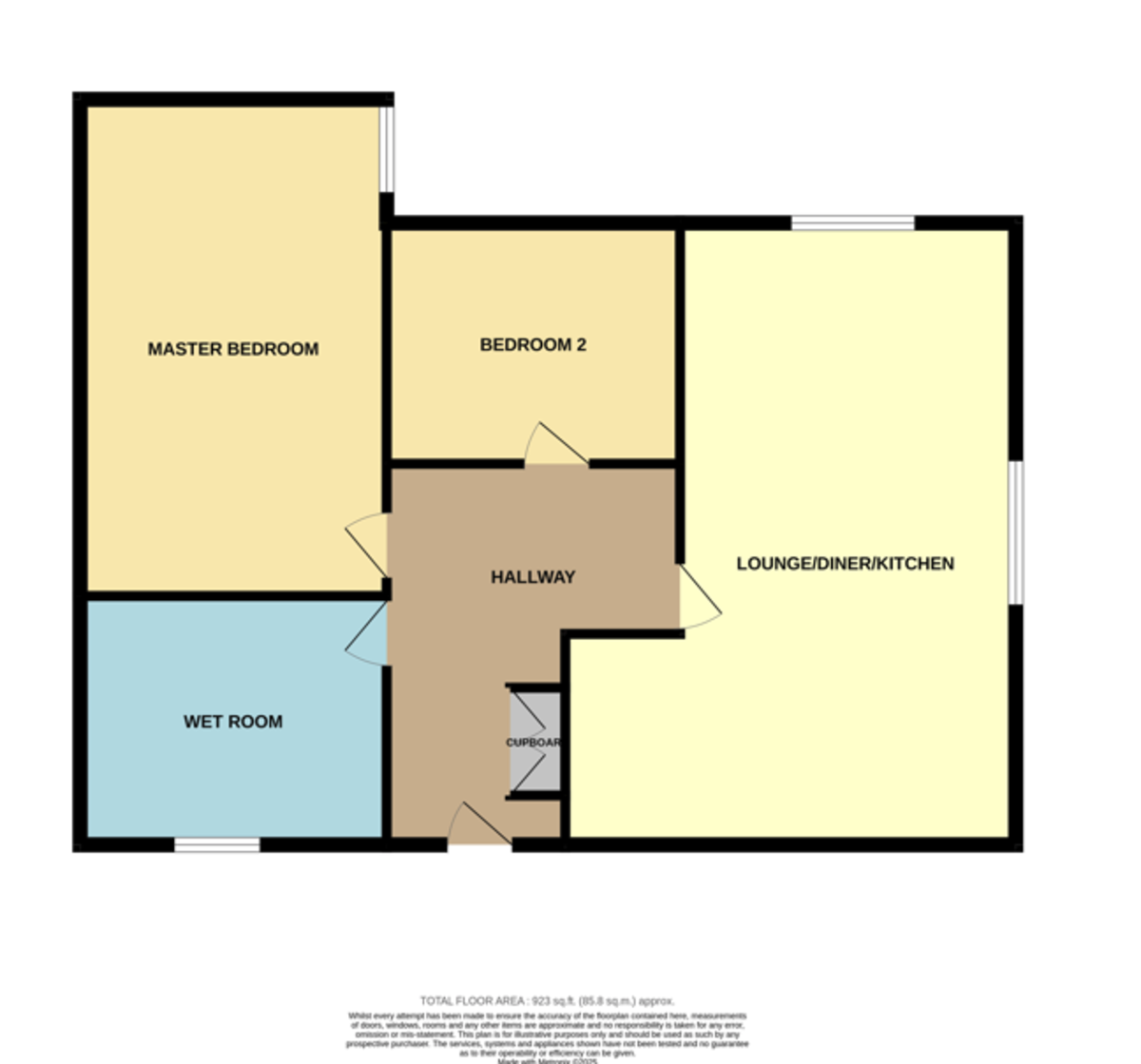 A bright and airy open-plan lounge and fitted kitchen, ideal for apartment living. The lounge area offers comfortable living space with room to relax or entertain, while the contemporary kitchen features fitted wall and base units with contrasting work surfaces over. Stainless steel sink and mixer tap integrated appliances comprising of double oven and grill with 4 ring halogen hob, extractor hood and light and fridge freezer, all within a well-designed, sociable layout.