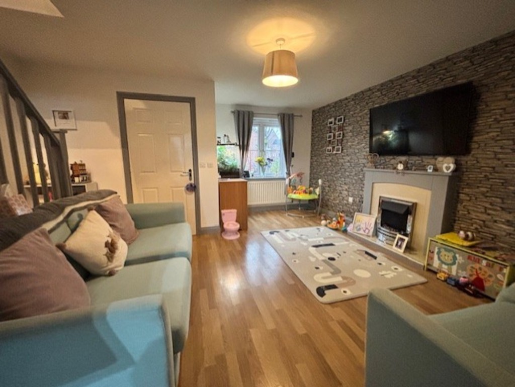 LOUNGE 15' 9" x 15' 1" (4.8m x 4.6m) A spacious lounge with stairs to the first floor. Double glazed window to front. Laminate flooring. Radiator. Door to kitchen.