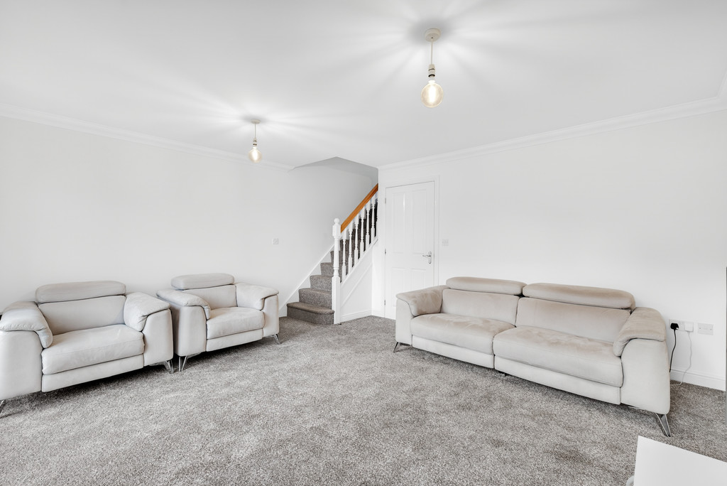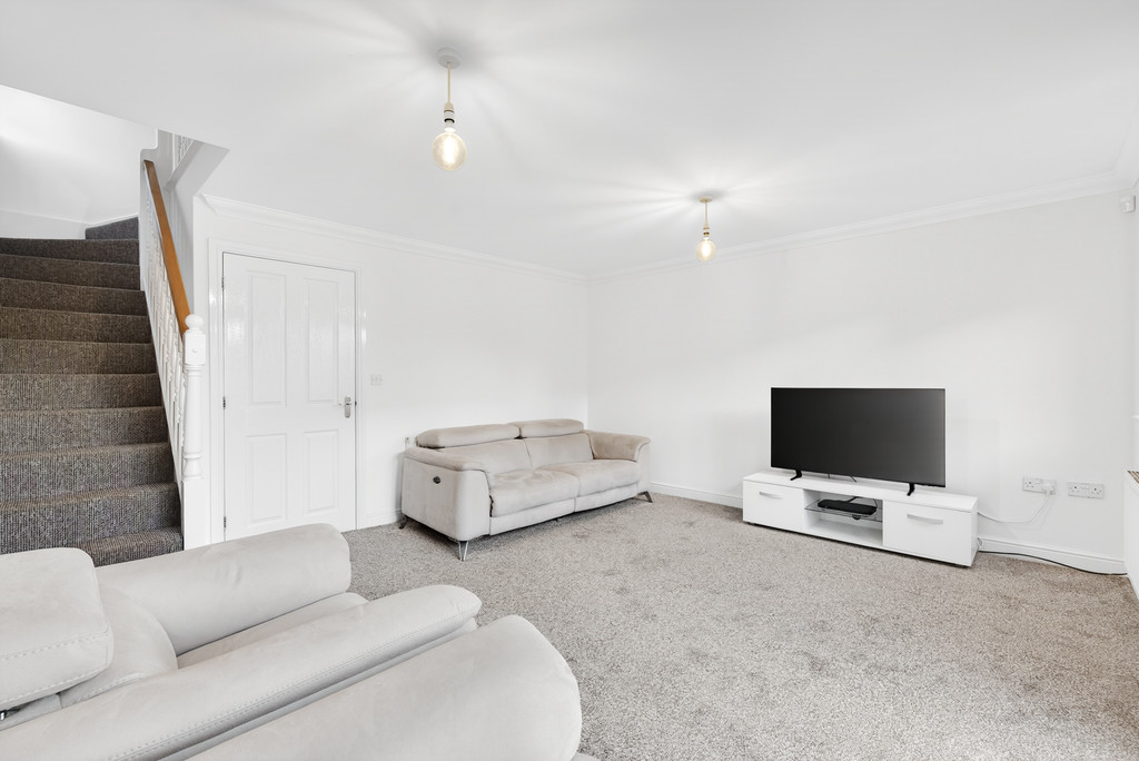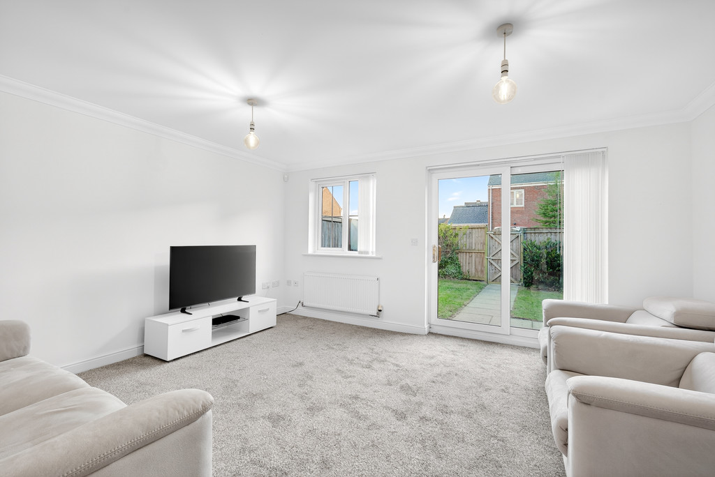 LOUNGE 15' 2" x 13' 8" (4.62m x 4.17m) A bright and airy lounge with double glazed windows and patio doors to the rear garden. Stairs to the first floor. Radiator.