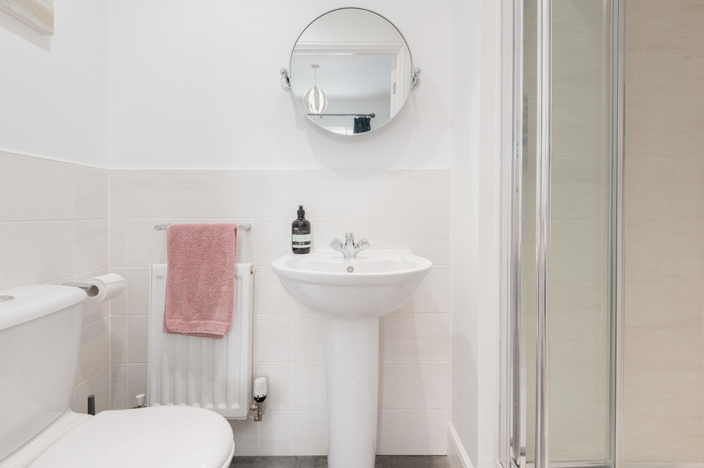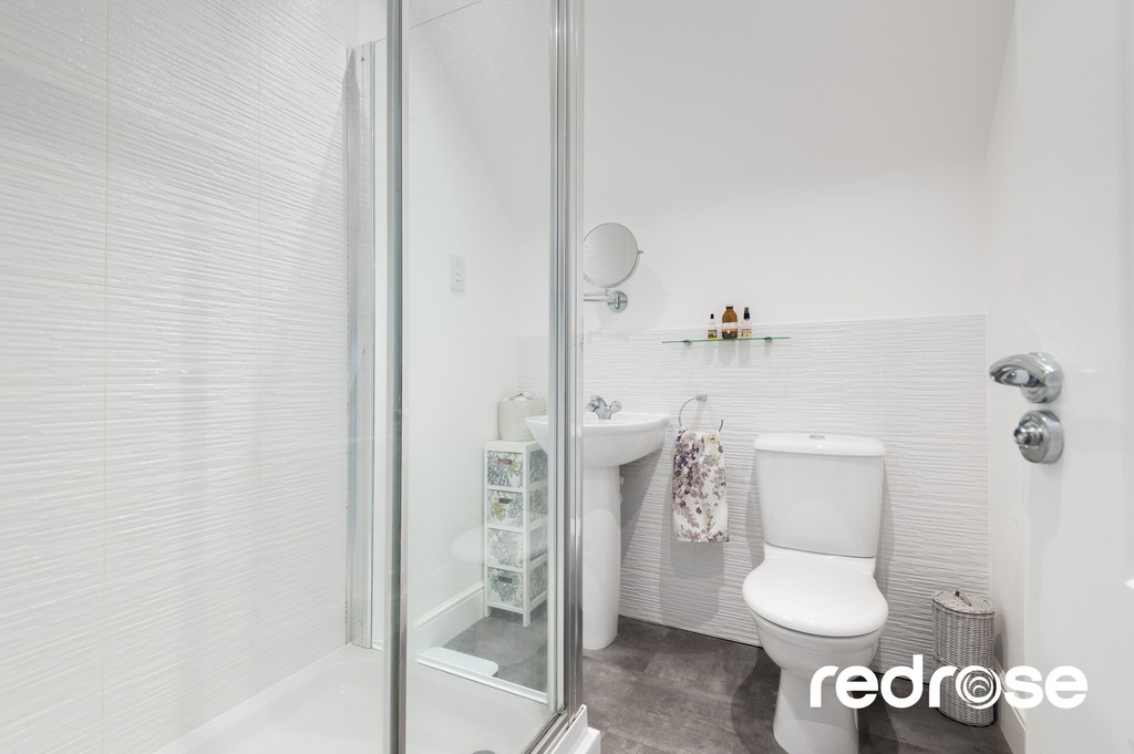 EN SUITE 7' 3" x 3' 5" (2.23m x 1.06m) Enclosed shower cubicle, Wc, radiator and wash hand basin.