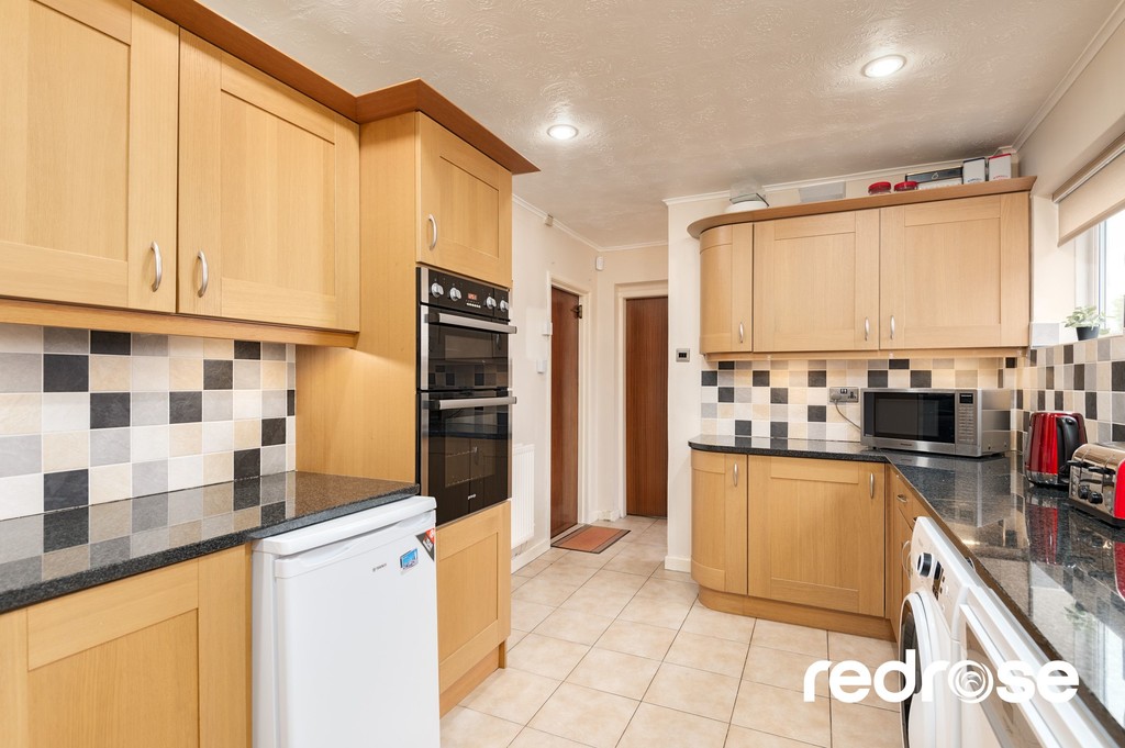 KITCHEN/BREAKFAST ROOM 15' 1" x 8' 6" (4.6m x 2.6m) With a range of wall and base units in light oak, double glazed windows to rear, tiled flooring and ceiling light point. Space for washing machine, dishwasher and fridge freezer, double oven and granite worktops.