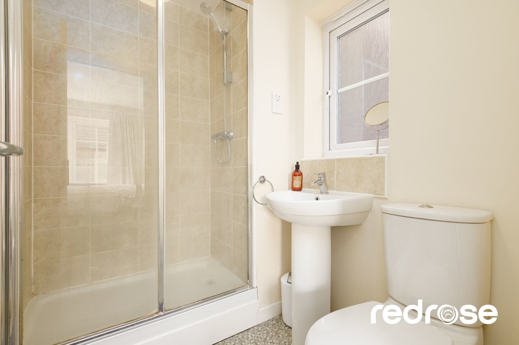 ENSUITE 7' 0" x 05' 1" (2.13m x 1.55m) This stylish ensuite bathroom is the perfect private retreat, featuring a spacious shower, a modern washbasin, and a toilet. With sleek tiling and contemporary fixtures, the design creates a clean and relaxing atmosphere. Thoughtfully designed for convenience and comfort, this ensuite provides a functional yet luxurious space, directly accessible from the master bedroom.