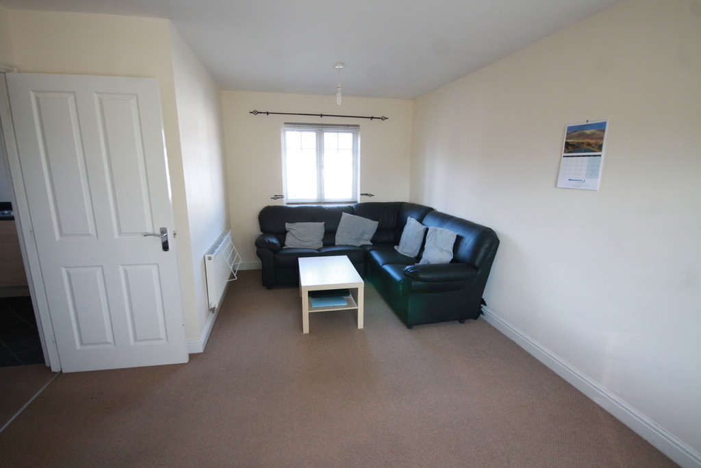 This property has an upstairs living area with a generous sized lounge, separate kitchen with modern fitted units and integrated appliances, two good size bedrooms and a family sized bathroom with a white three piece suite and shower over bath. Downstairs the property has a good size garage with a parking space in front of the property.