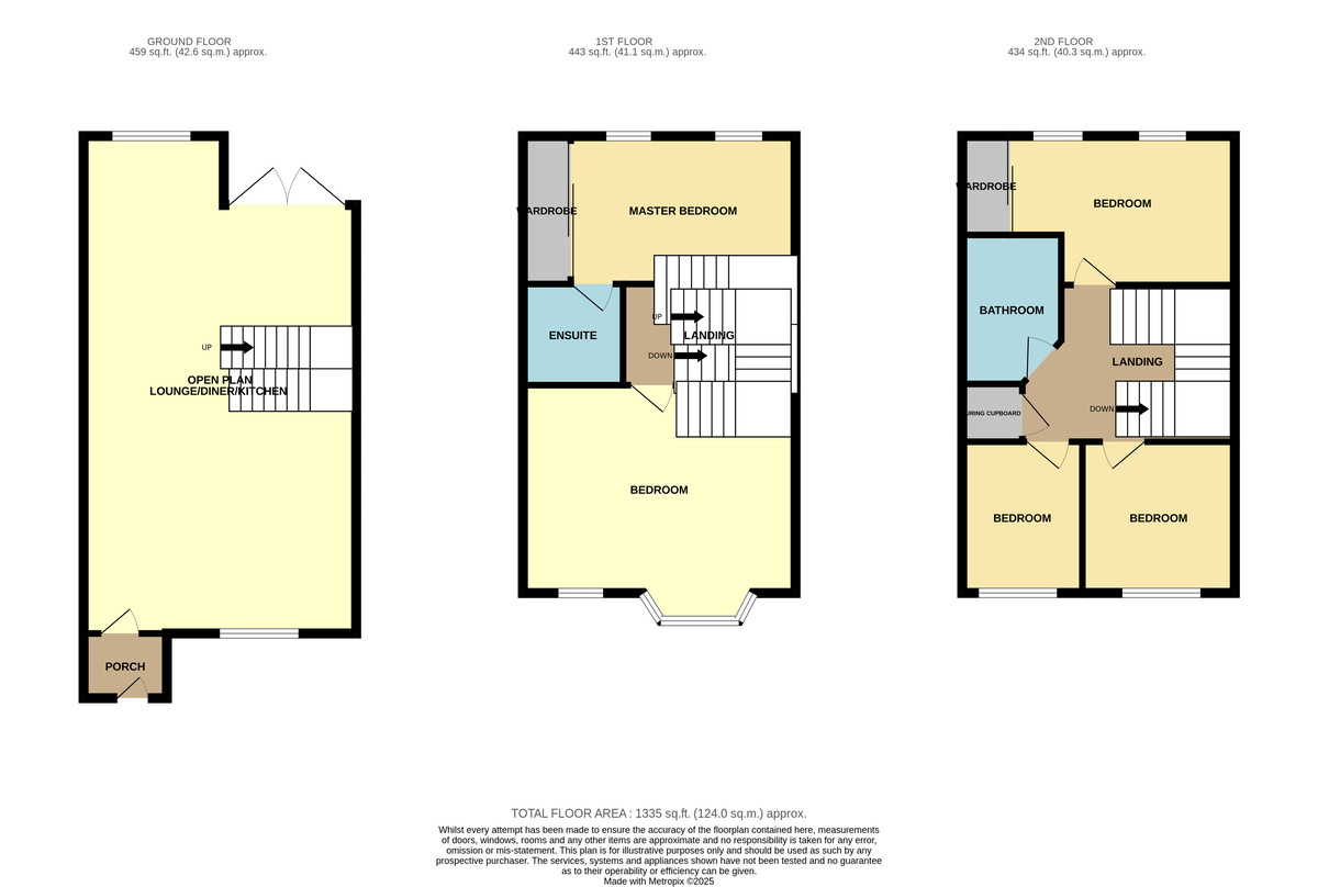 ENSUITE 7' 8" x 4' 9" (2.34m x 1.45m) Adjoining the master bedroom is a stylish three-piece ensuite, thoughtfully finished with a contemporary suite. It comprises a walk in tiled shower enclosure, a sleek wash basin with storage, and a modern W.C. Elegant tiling and quality fittings create a fresh, spa-like feel, offering both comfort and convenience in your own private space.