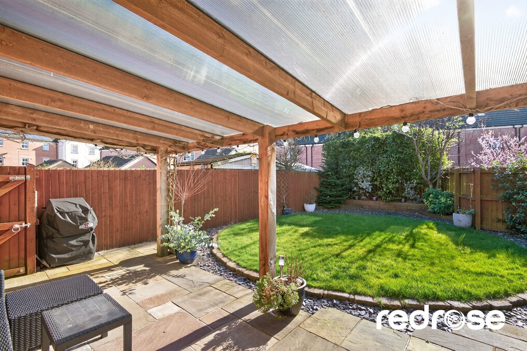 GARDEN To the rear, you'll find a beautifully presented garden, featuring a covered patio/seating area that's perfect for al fresco dining and relaxation all year round. This space leads to a central lawn, ideal for outdoor activities and play. The garden also boasts ample seclusion, making it a wonderful space for your family to enjoy.