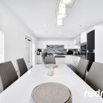 KITCHEN/DINING ROOM 21' 10" x 11' 2" (6.65m x 3.4m) A stunning open plan kitchen dining room featuring a range of white gloss bas and wall units with complimenting work surfaces over incorporating stainless steel sink unit with mixer. Kitchen island with seating. Built in double oven, gas hob, extractor and dish washer. Space for freestanding fridge freezer. Tiled flooring. Ceiling spotlights. Part tiled walls. Double glazed patio doors opening on to the rear garden. Open to the dining area with space for large table, double glazed window to rear. Door to Utility room.