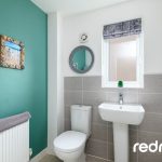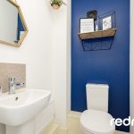 CLOAKROOM Two piece suite with low level WC and wash hand basin. Ceiling light point, vinyl flooring and radiator.