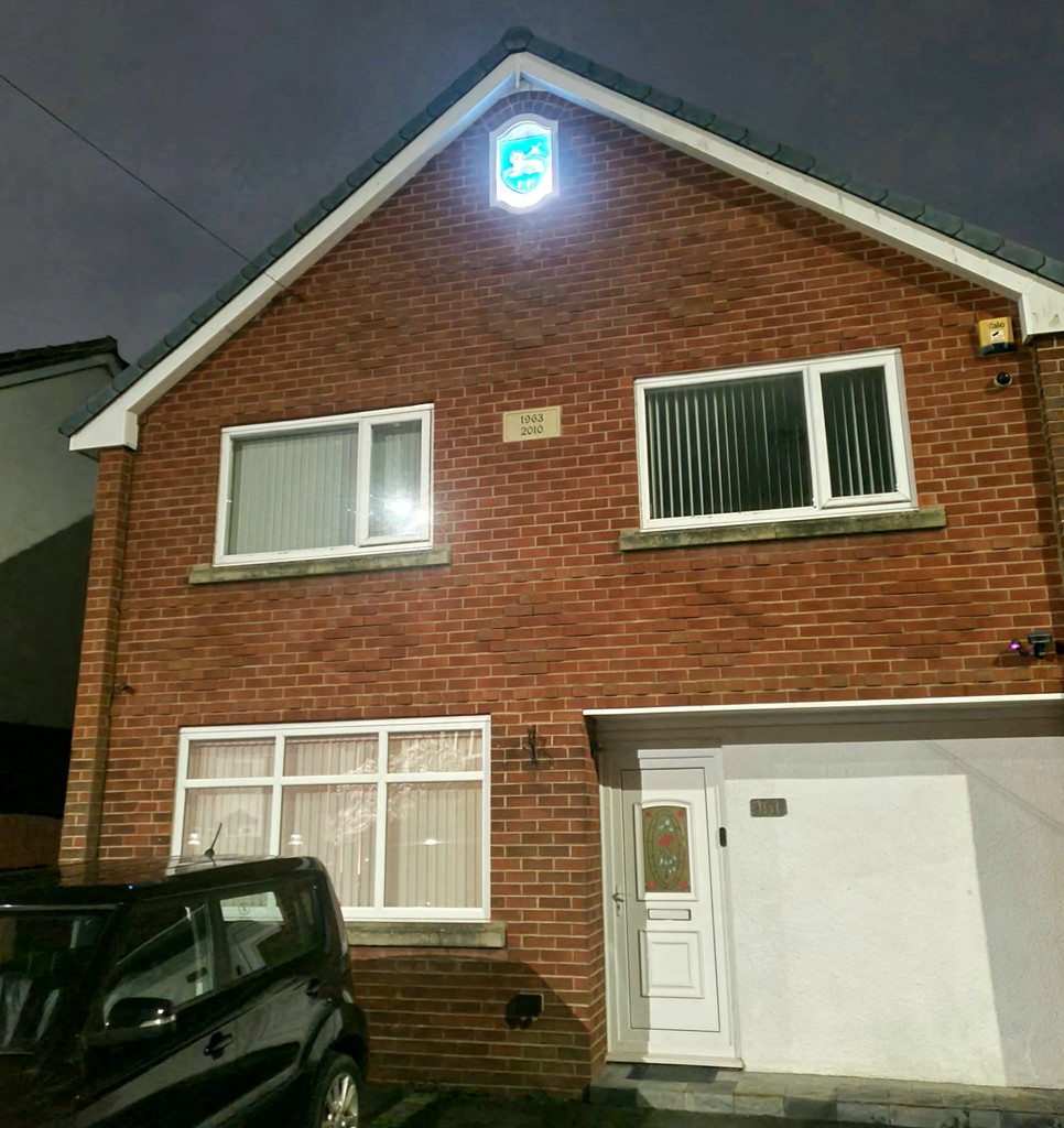Reception Room 23' 5" x 11' 6" (7.14m x 3.51m) UPVC double glazed window, central heating radiator, feature red brick fireplace with wooden mantel, spotlights, staircase to the first floor, and access to the kitchen and office.