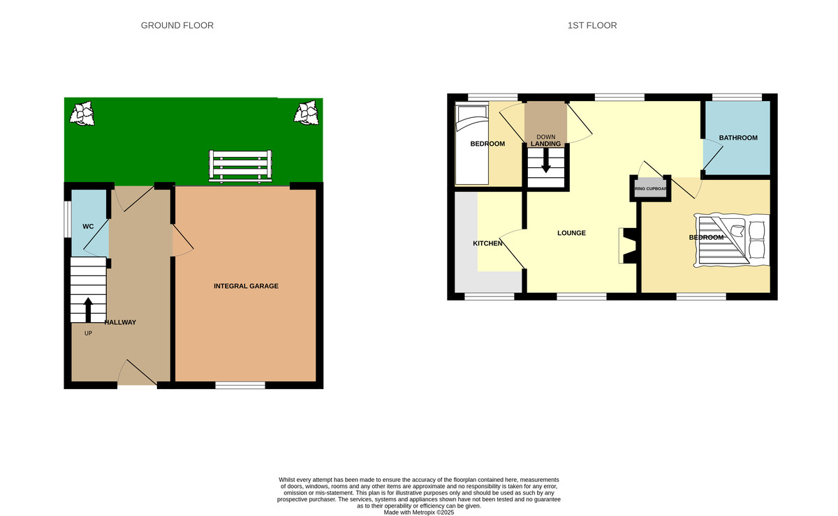 GARAGE 19' 5" x 8' 5" (5.92m x 2.57m) An integral garage with up and over door, power and light.