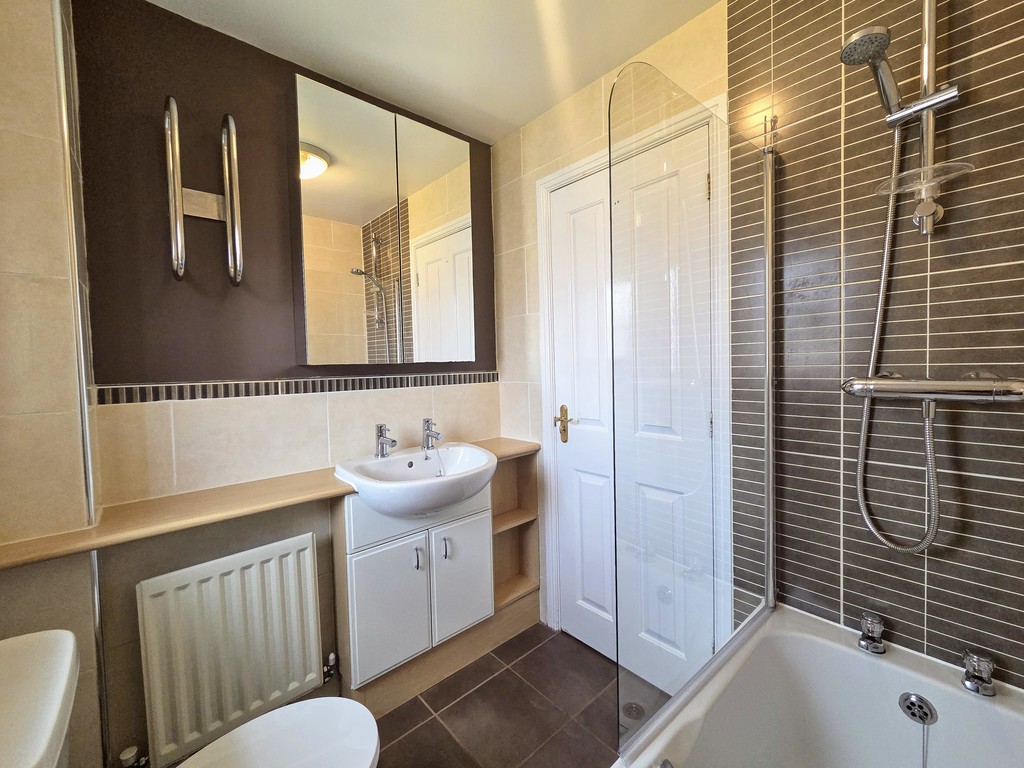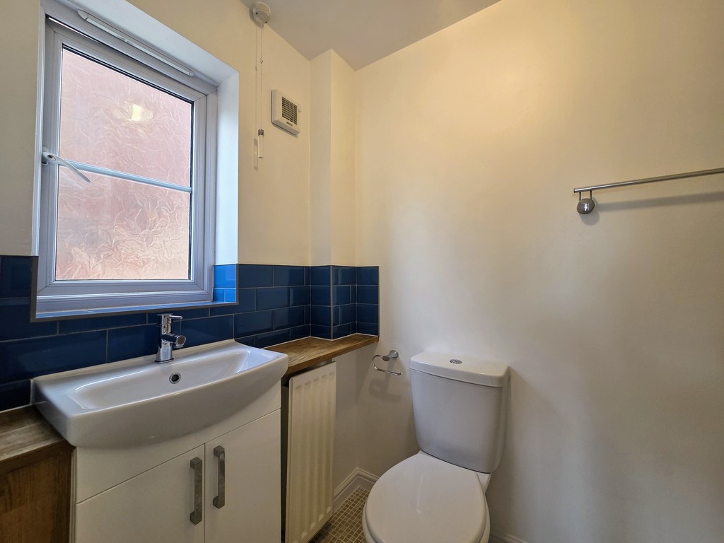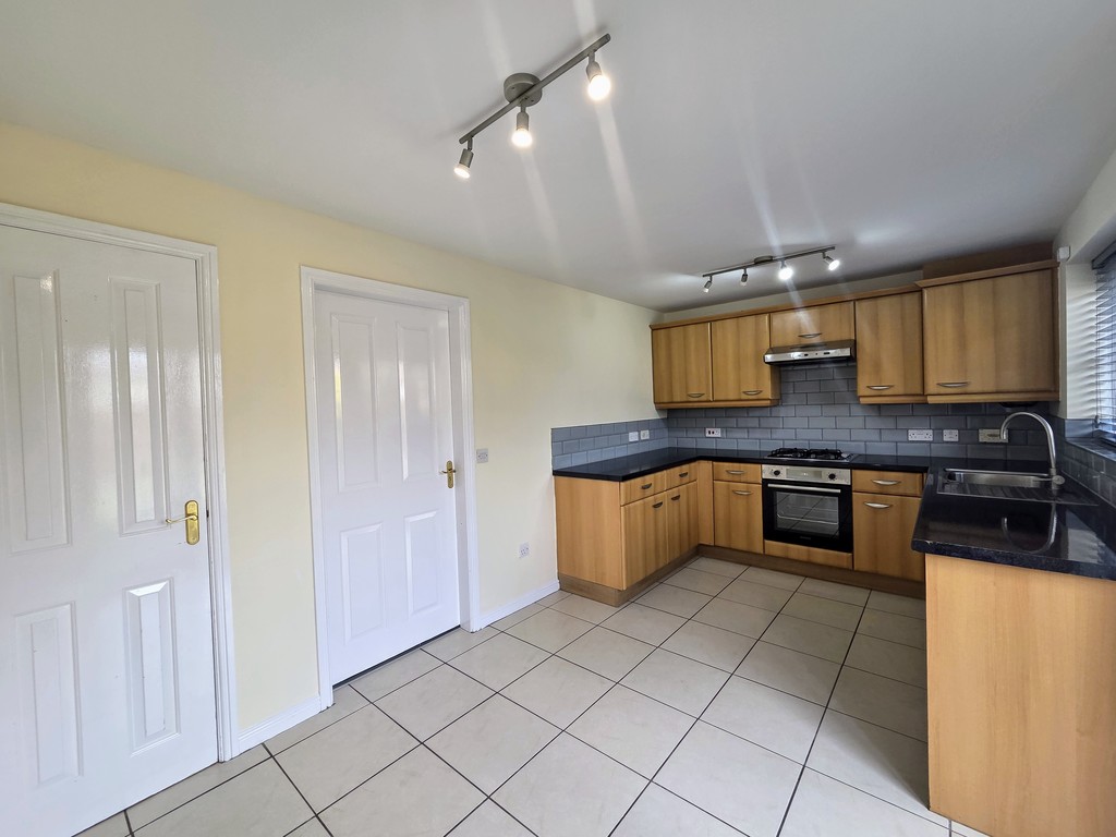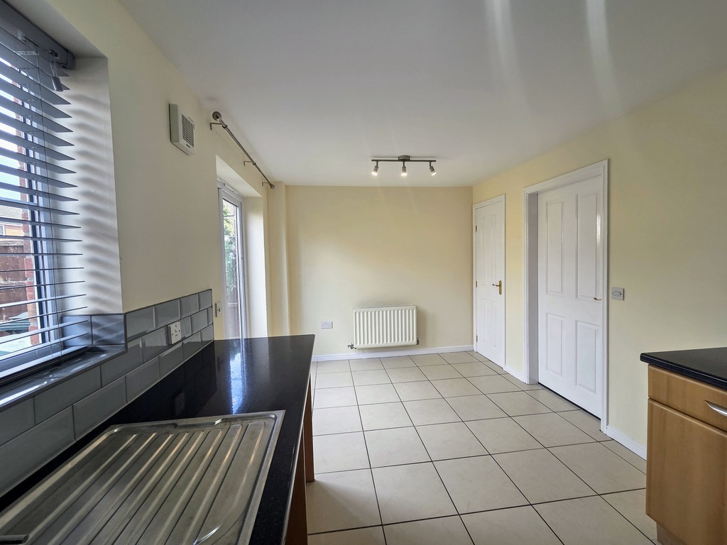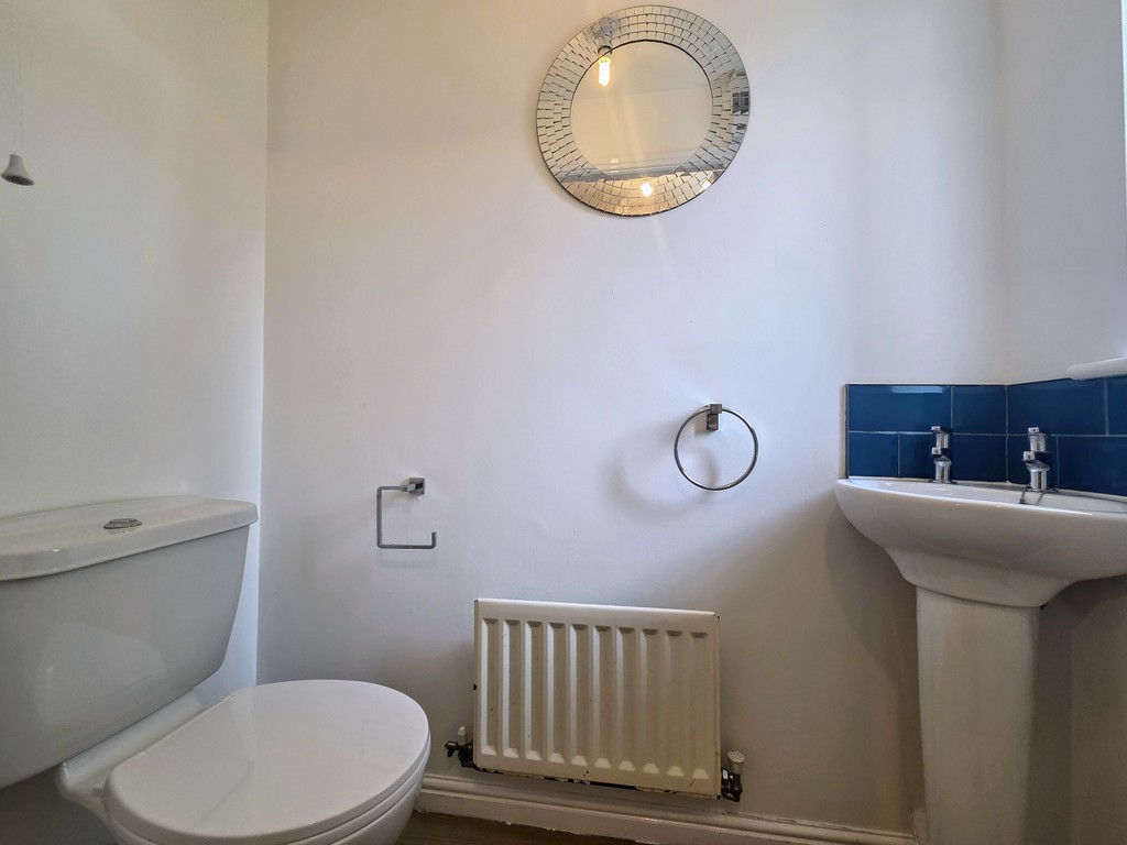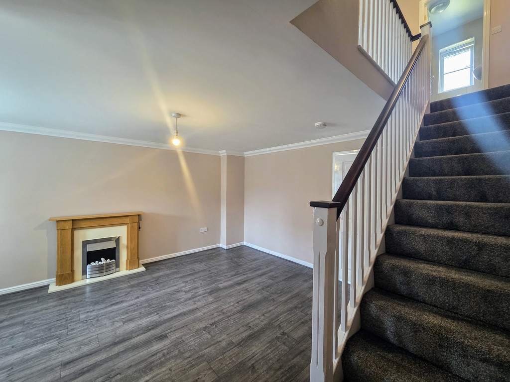 Entrance hallway with downstairs WC, leading through to a generous sized living room with a feature fireplace. Open plan kitchen dining room , small pantry and patio doors that leads out to a great size rear garden. Upstairs there are three bedrooms two doubles and one single, the master boasting fitted wardrobes and a lovely en suite shower room. Modern family bathroom with a three piece suite. Externally the property has allocated parking and a beautiful picturesque green outlook to the front.