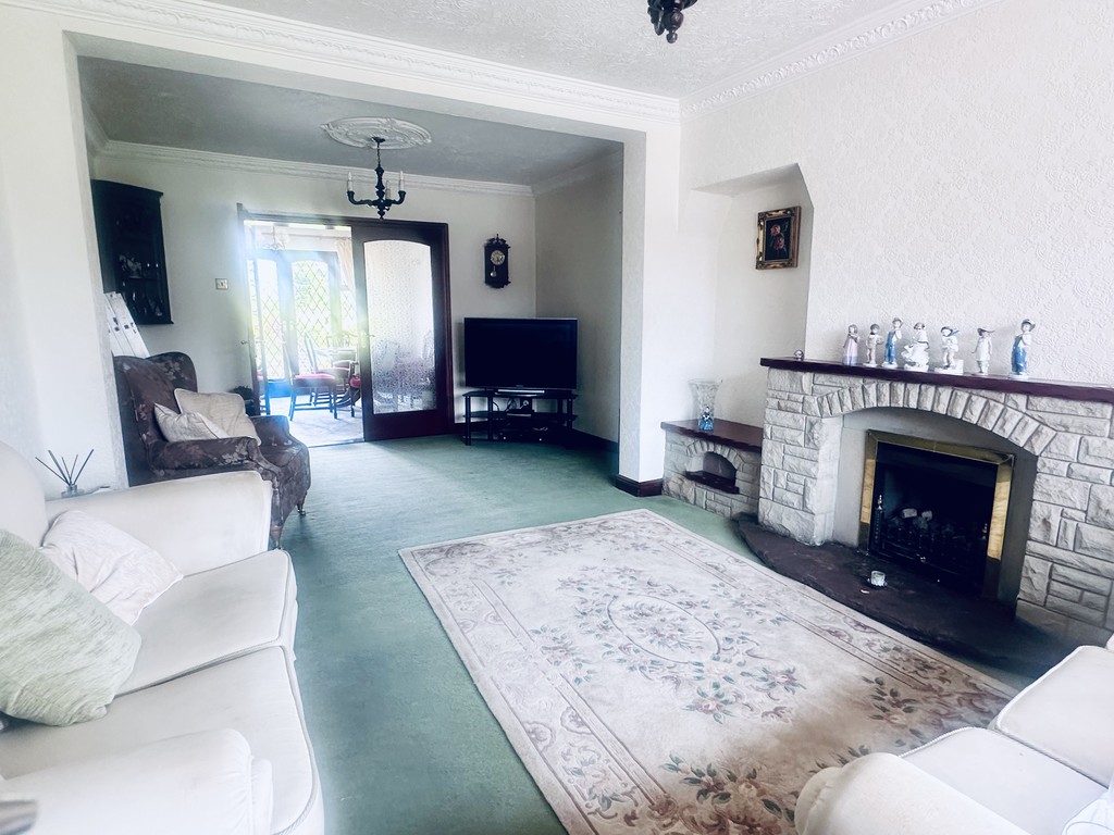 LOUNGE THROUGH ROOM 21' 6" x 12' 2" (6.57m x 3.72m) A spacious lounge with double glazed leaded bay window to the front aspect, doble panel radiator, fireplace, ceiling rose and coving.