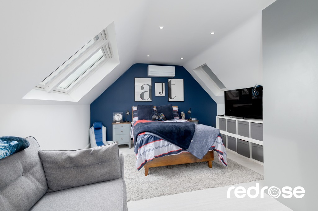 Currently used as an office, this room has laminate flooring and Velux windows with concealed blinds, providing ample natural light. Equipped with a radiator and an air conditioning/heating system.