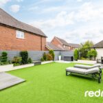 OUTSIDE - FRONT The front of the property features a low-maintenance, high-quality artificial lawn, and a well-designed pathway leading to the front door. A double-width driveway provides ample parking space.