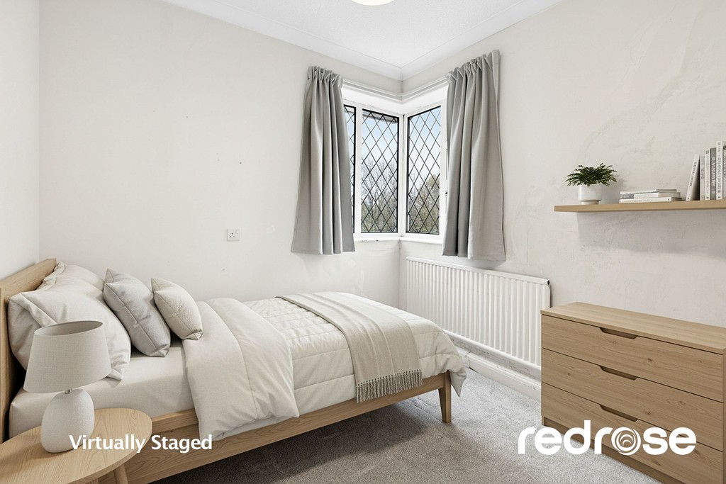 BEDROOM THREE 10' 5" x 9' 0" (3.18m x 2.74m) A bright and airy room featuring a double-glazed corner window, which allows natural light to stream in from two aspects, creating a light-filled and welcoming space. Complete with a ceiling light point and radiator, this versatile room offers both comfort and flexibility, perfect for use as a bedroom, study, or sitting area.