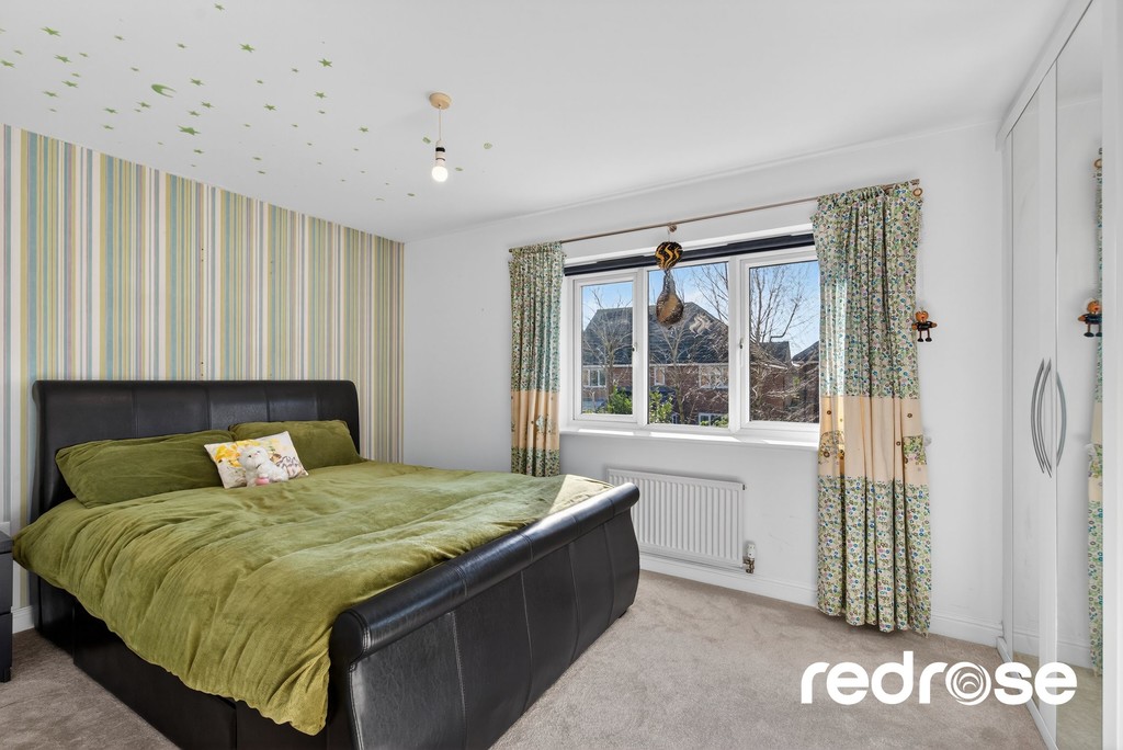 MASTER BEDROOM 17' 1" x 11' 11" (5.21m x 3.63m) A generously sized master bedroom to the front of the home, filled with natural light and offering a serene retreat creating a comfortable and elegant private sanctuary. Three double glazed windows to the first floor, radiator and built in wardrobes with hanging space.