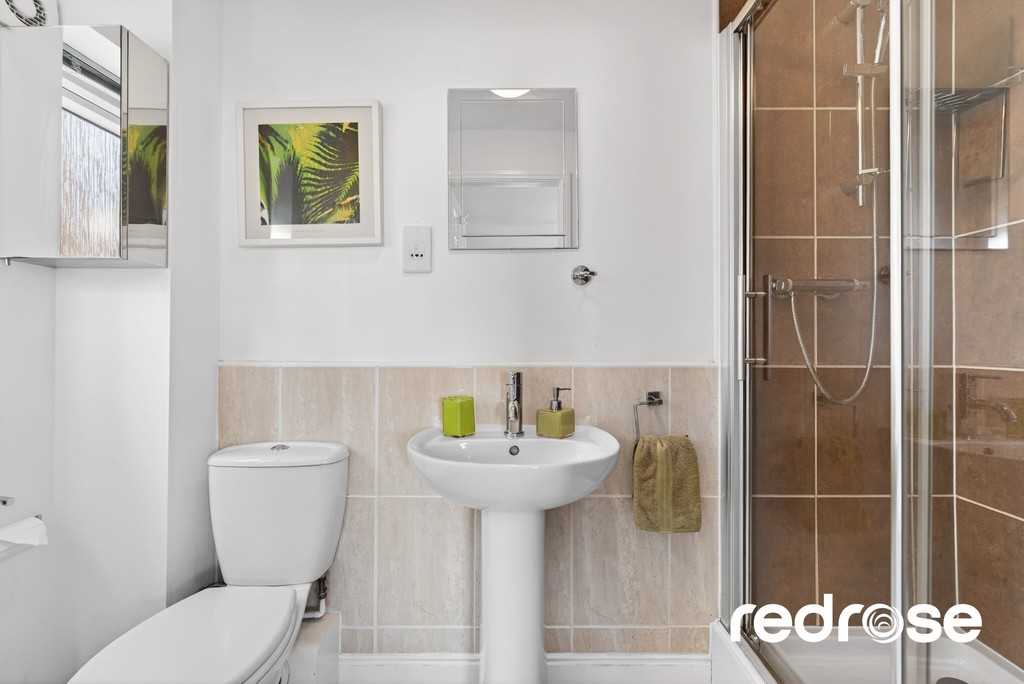ENSUITE TWO 6' 5" x 3' 11" (1.96m x 1.19m) A contemporary three-piece shower ensuite, featuring a modern shower, toilet, and wash basin. Bright and stylish, it provides a private and practical space, combining comfort with a sleek, modern finish.