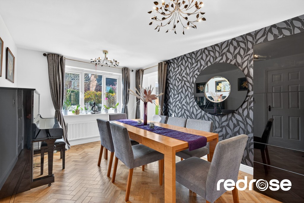DINING ROOM 14' 5" x 10' 1" (4.39m x 3.07m) A beautifully proportioned dining room, perfect for family meals and entertaining. Bright and inviting, it offers ample space for a large table and flows effortlessly into the kitchen and living areas, creating a seamless space for modern family life.