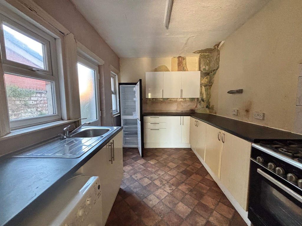 KITCHEN Fitted with a range of base and wall units with stainless steel sink unit. Double glazed door and window to side.