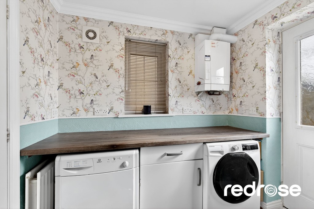 UTILITY ROOM A practical utility room, offering space for laundry appliances and additional storage. Designed for convenience, it helps keep the main living areas clutter-free while providing a functional workspace. Double glazed window to the side aspect and door to the rear garden.