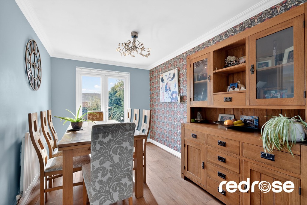 DINING ROOM 11' 4" x 8' 0" (3.45m x 2.44m) A generous dining room, filled with natural light, offering plenty of space for a full dining table and chairs. Perfect for family meals or entertaining guests, the room provides a comfortable and welcoming setting, seamlessly connecting to the rest of the home. Double glazed French Doors to the rear garden and radiator.