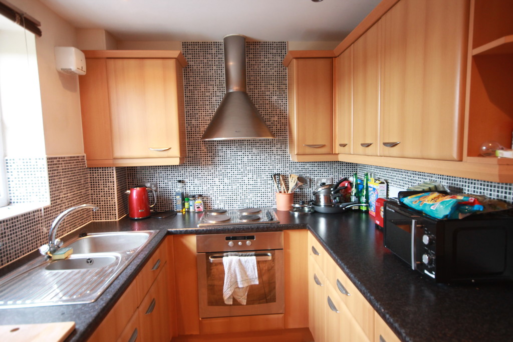 KITCHEN 9' 11" x 6' 9" (3.03m x 2.08m) Fitted wall and base units with integrated fridge/freezer, dish washer and washer dryer. 4 ring hob and extractor, oven and stainless steel basin and drainer. Partially tiled splash backs, down lighting, single radiator and double glazed window to rear aspect.