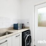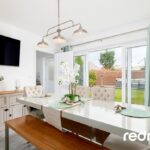 Sliding French doors lead to the rear garden creating a bright and airy atmosphere that effortlessly blends indoor and outdoor living.