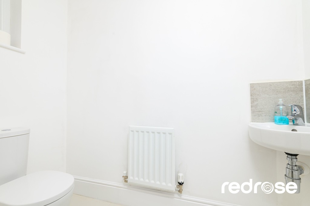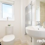 DOWNSTAIRS W.C A well-appointed two-piece downstairs cloakroom featuring a modern low-level WC and a sleek hand basin with integrated vanity unit. Stylish tiling and quality fittings create a clean, contemporary finish-offering both practicality and comfort for guests and everyday use.