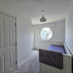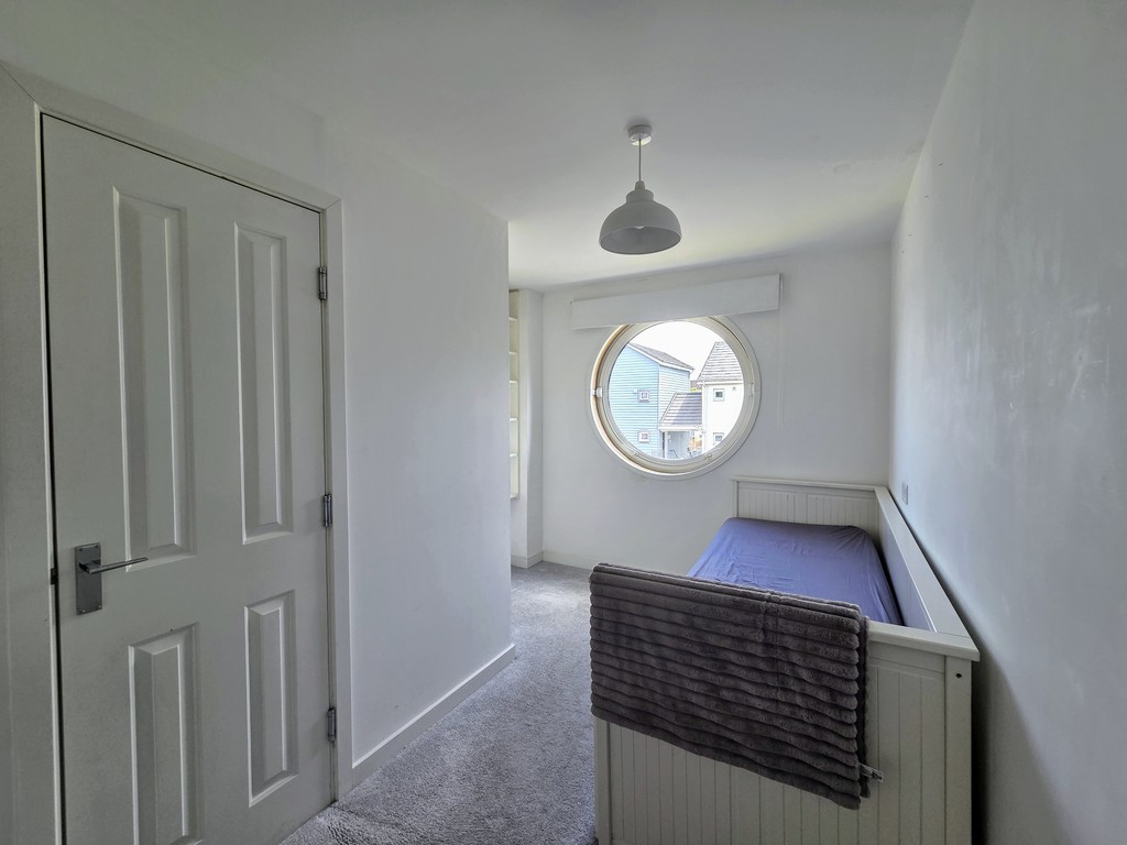 BEDROOM TWO 13' 5" x 9' 1" (4.09m x 2.77m) A spacious double bedroom featuring a distinctive circular window, which floods the room with natural light, adds a unique architectural touch and electric heater.