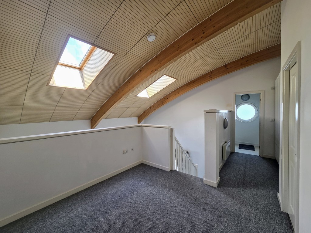 MASTER BEDROOM 9' 7" x 9' 3" (2.92m x 2.82m) An impressive mezzanine master bedroom overlooking the lounge, forming a striking architectural feature. The elevated position enhances light and space, while still offering comfortable proportions for furnishings and a private sleeping retreat.